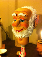 This year a Canadian Santa will have the assistance of the little fellow you see here. He was made using my Otis head. Add some pointed ears, some buck teeth, half-masted eyelids and a small white beard and you've got a Christmas elf. I just need to do some paint touch up and he'll be ready to greet the naughty and nice.